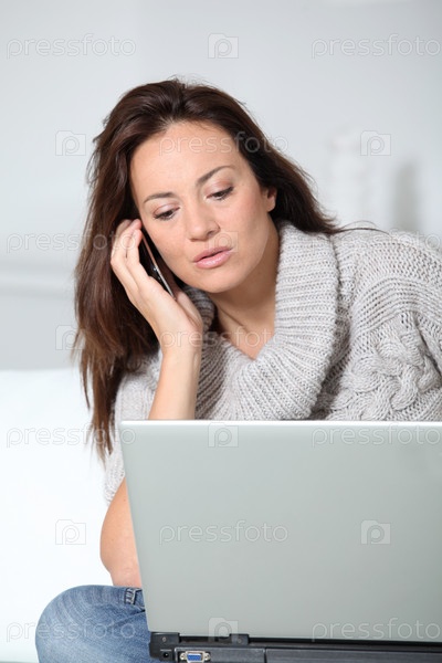Женщина на диване с ноутбуком