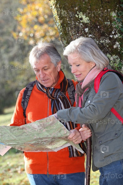 Старший пара с картой на день Пешие прогулки