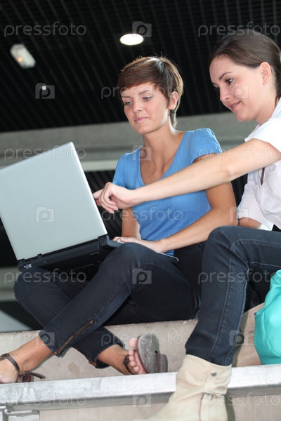 Молодые женщины, работающие на портативном компьютере