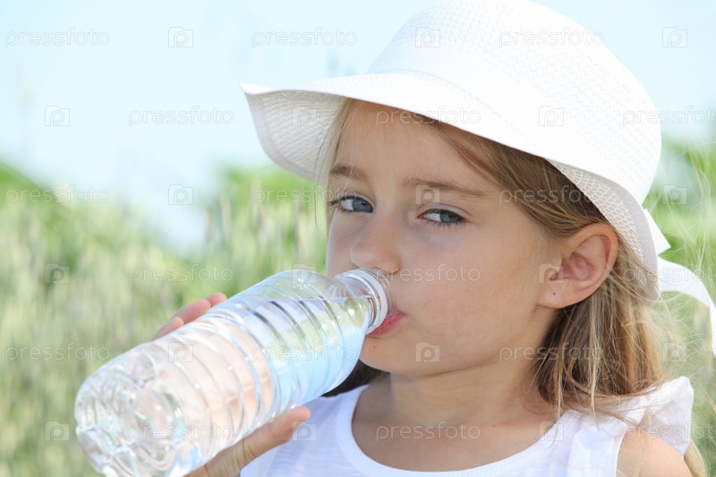 Блондинка милая маленькая девочка питьевой воды