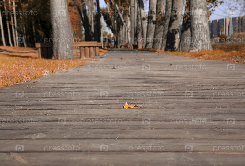 Деревянная дорожка в осеннем парке