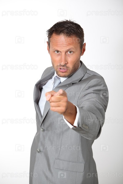 Бизнесмен, указывая на камеру