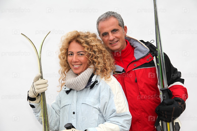 Счастливая пара на горнолыжном курорте