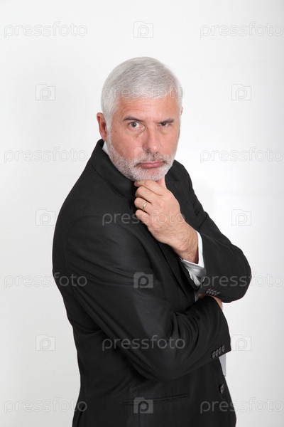 Портрет предпринимателя с рукой на подбородке