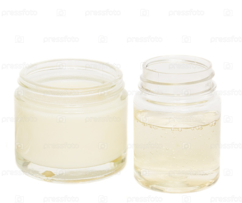 Открытые баночки с кремом и лосьоном изолированные на белом фоне