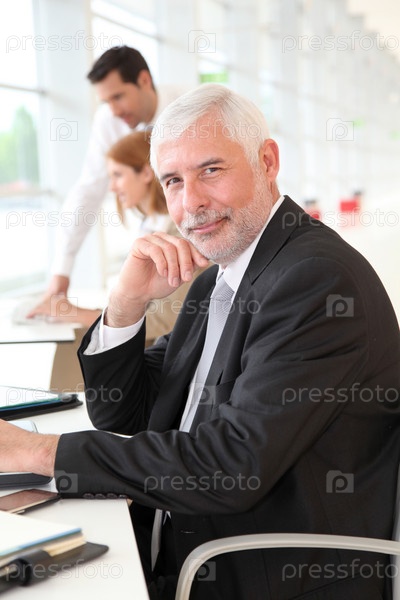 Старший бизнесмен, работы на ноутбуке