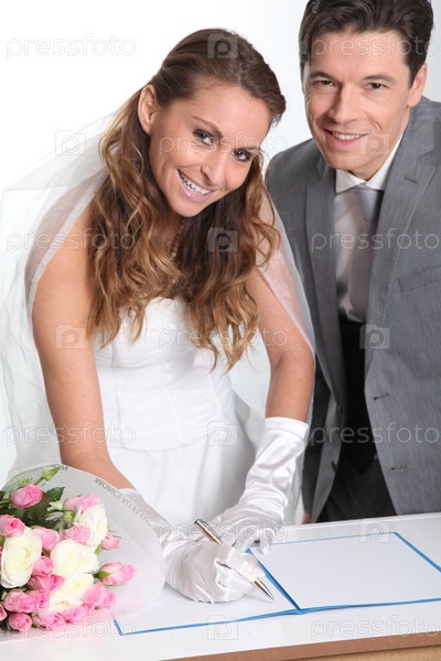 Невеста и жених, подписания брачного контракта