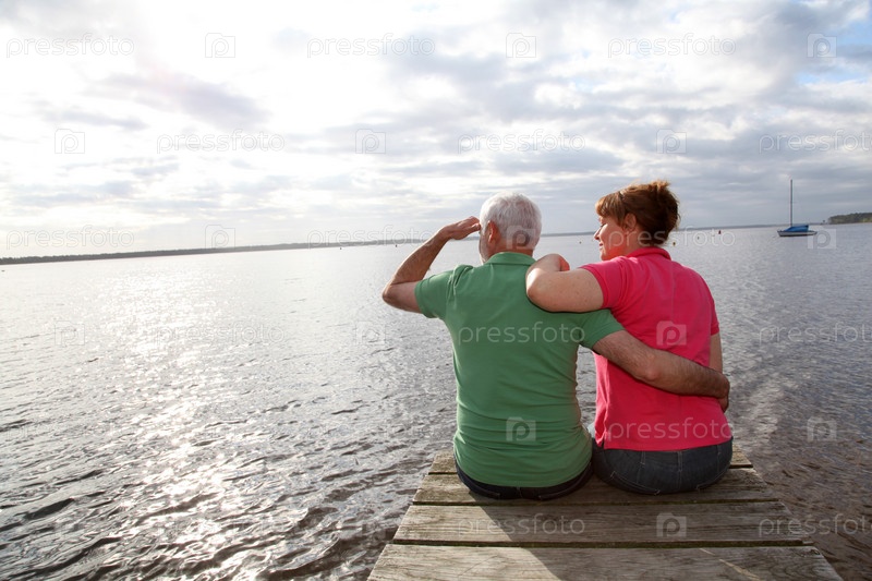 Пожилые супружеские пары, сидя на понтон