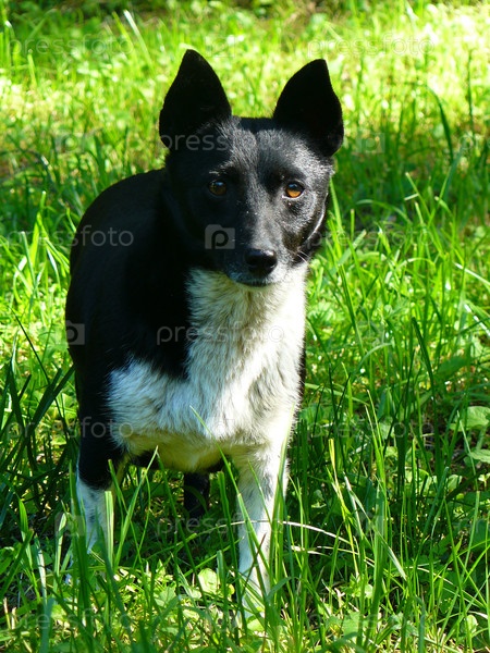 Портрет собаки на зеленой лужайке