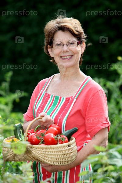 Женщина выбирает овощи в огороде