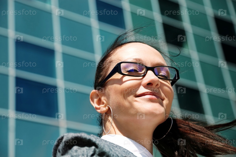 Счастливый бизнесвумен, мечтая о будущем