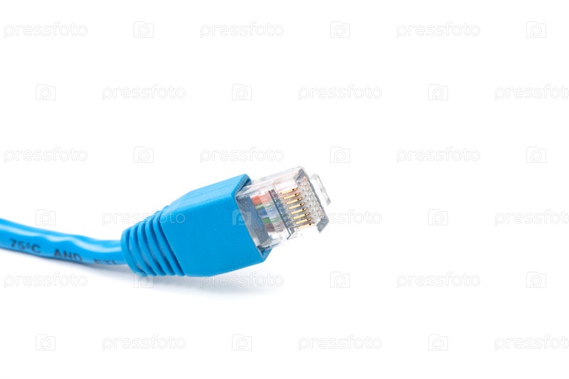 Синий кабель с сетевым разъемом на белом фоне