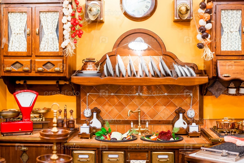 Красивая кухня в стиле ретро с посудой