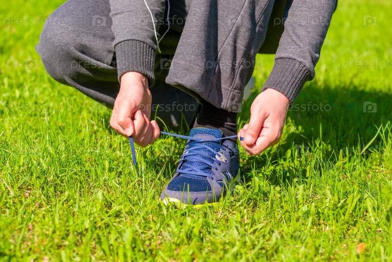 Человек связывать шнурки