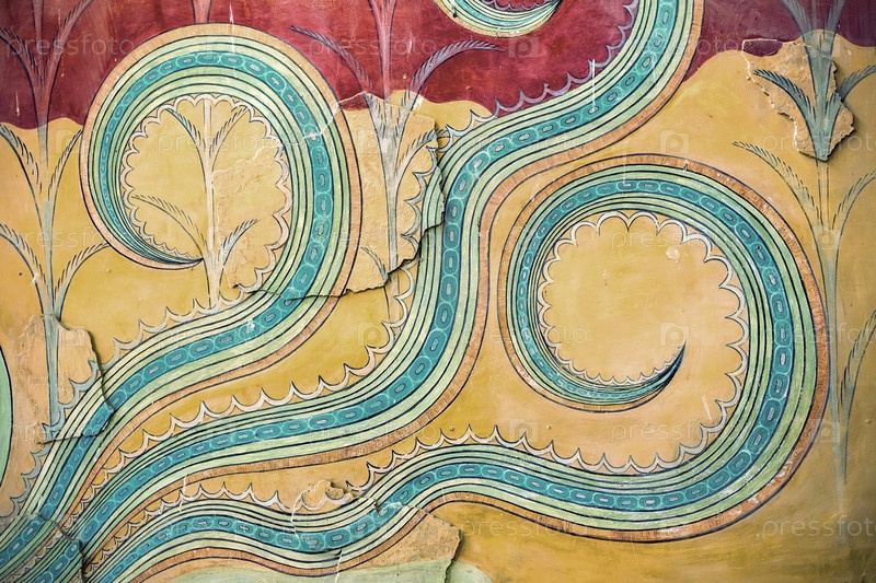 Фрагмент древних настенных росписей. Кносский дворец, Крит, Греция