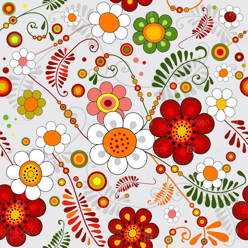 Бесшовные узор с яркими цветами на сером фоне(вектор)