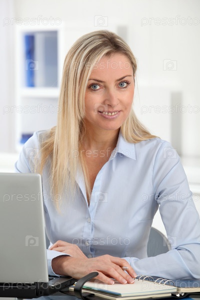 Красивая блондинка женщина работает в офисе