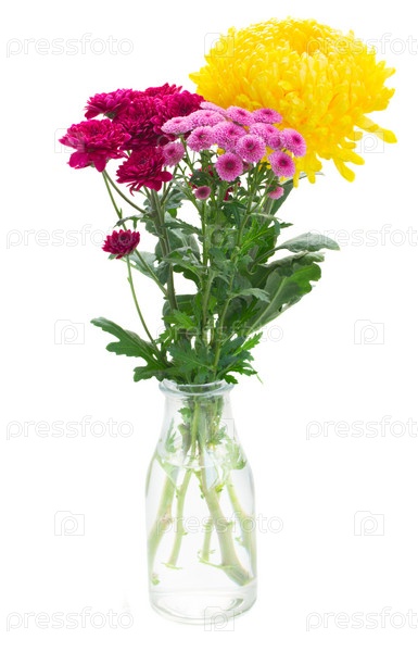 Цветки желтые, красные и розовые, хризантемы