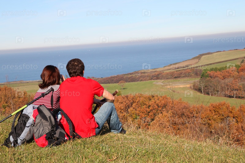 Пара, туризм в сельской местности на красивый осенний день