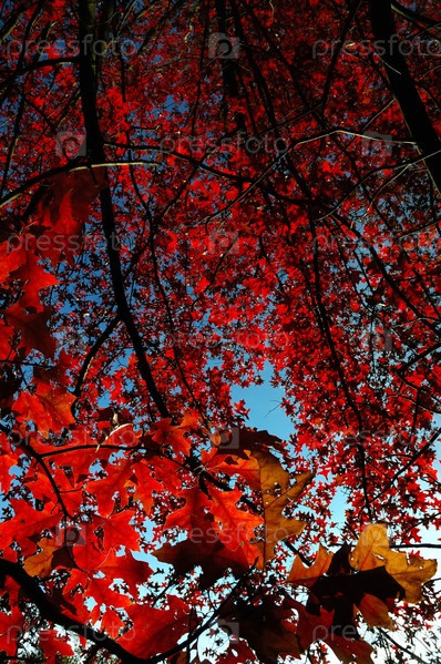 Вверх представление дерева с листьями в подсветки, осень