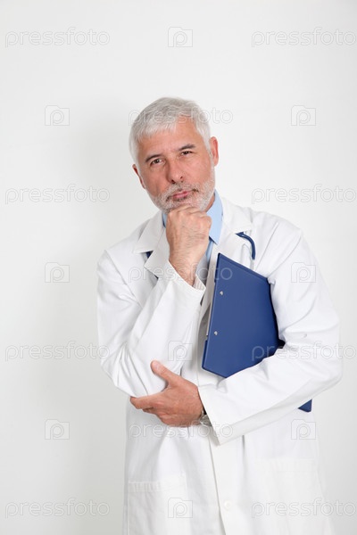 Старший врач с рукой на подбородке