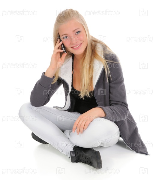 Улыбающаяся девушка говорит по телефону