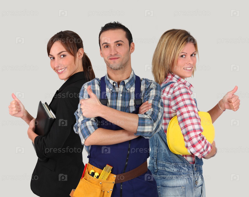 Группа молодых работников на белом фоне