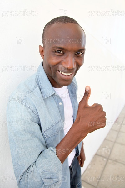 Портрет улыбается человек показываю вверх