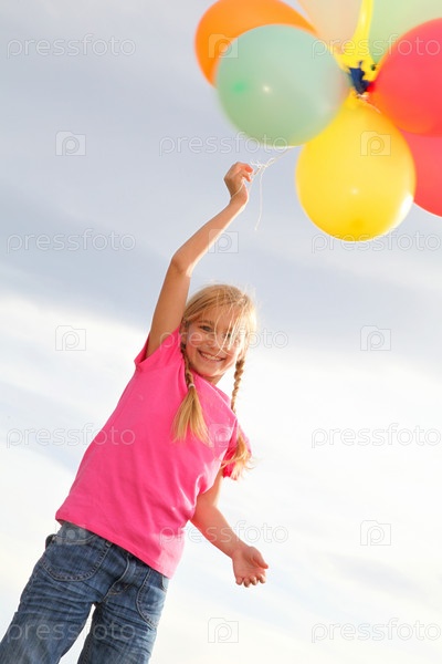 Маленькая девочка, протягивая шары в сельской местности