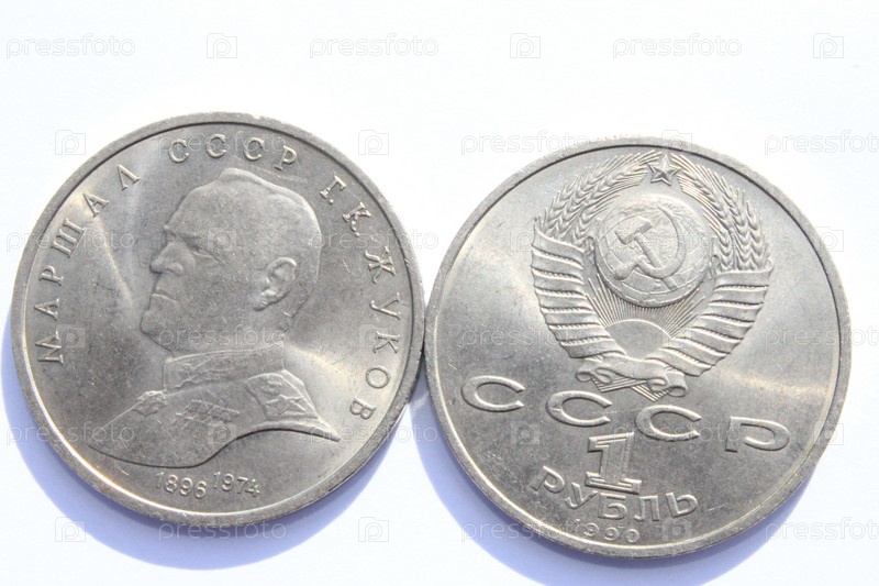 Старая советская монета крупным планом, две стороны
