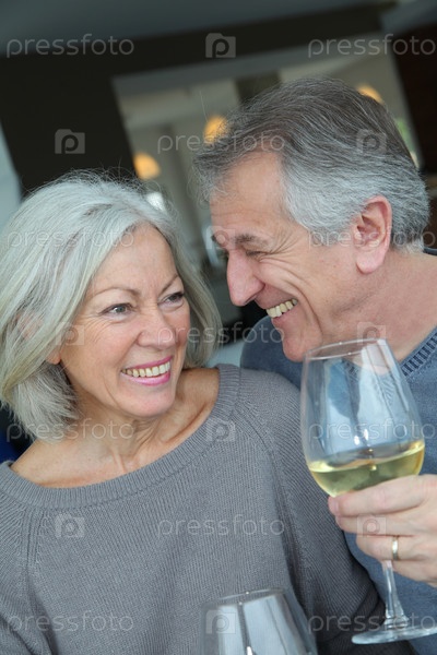 Портрет счастливой Пожилые супружеские пары, аплодисменты с вином