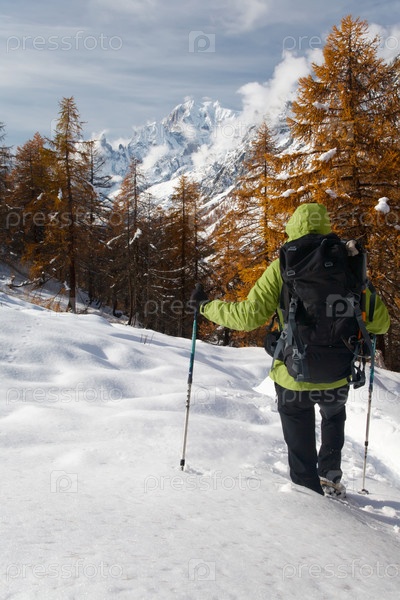 Туристы, глядя на Дикий пейзаж Монблан, Италия