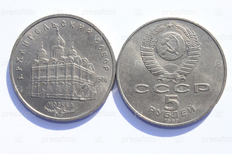 Старая советская монета крупным планом, две стороны