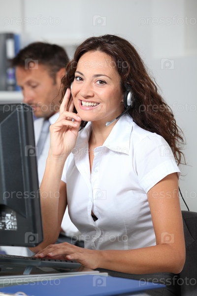 Красивая женщина с гарнитурой