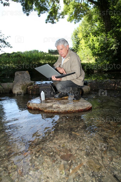 Биолог тестирования качества потока воды
