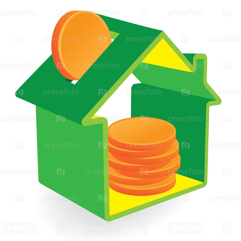 Денежная копилка в виде зеленого домика. Концепция недвижимости
