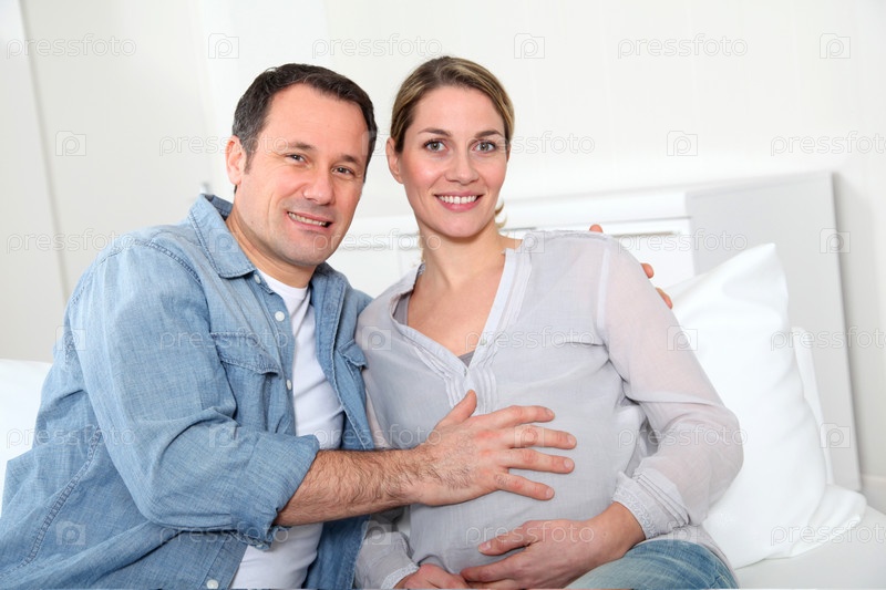Будущие родители, сидя в диван дома