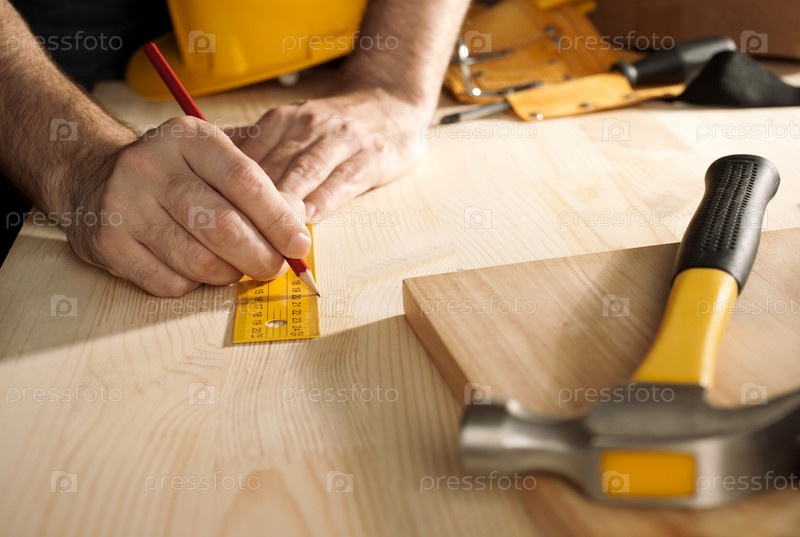 Концепция строительства, селективный акцент на руку и частью карандаш