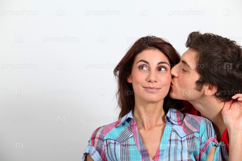 Молодой человек, целуя подругу