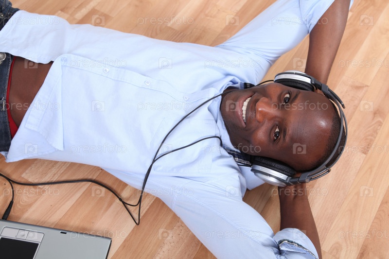 Расслабленной человек, прослушивания музыки дома