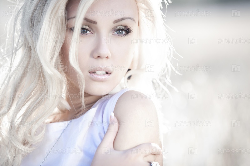 Портрет молодой женщины на открытом воздухе. Яркий белый цвета