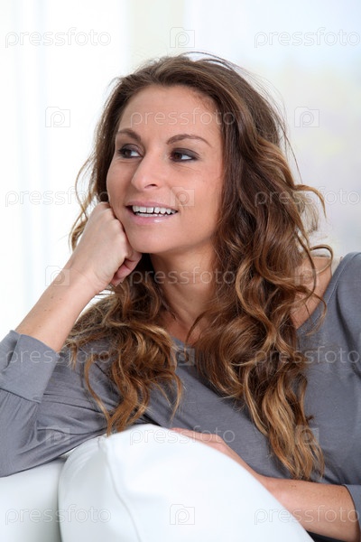 Портрет красивые улыбающиеся женщины, расслабляясь в диван
