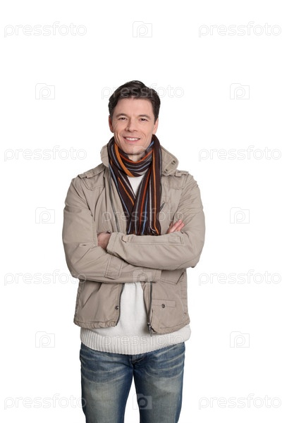 Взрослый человек с зимнюю одежду, стоя на белом фоне