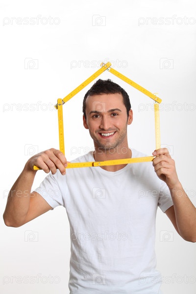 Крупным планом улыбается человек с домашней признаком