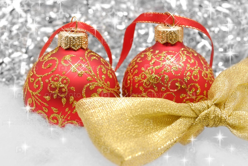 Красный рождественские шары и лук желтый более размытым фон. Малая глубина резкости