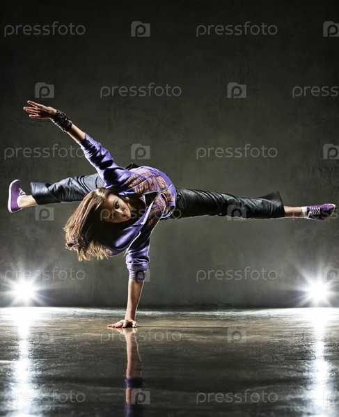 Молодая женщина танцовщица. На фоне стены