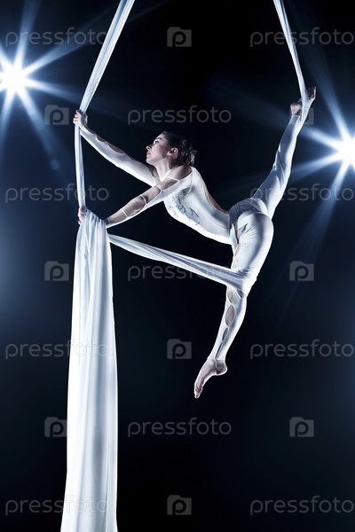 Молодая женщина гимнастка. На черном фоне с флеш-эффект