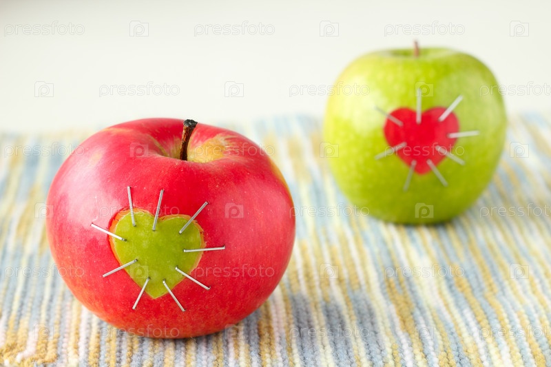 Два яблока с сердечками