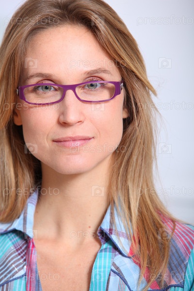 Крупным планом красивая блондинка женщины в очках