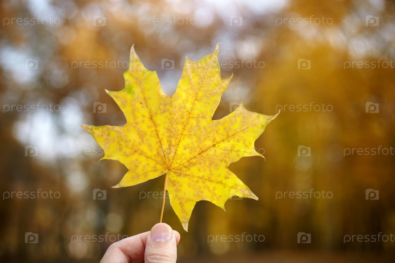 Часть руки с желтых листьев, сосредоточиться на ближайшей части